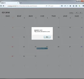 jQuery 썸네일형 리스트형 [w2ui] w2ui 캘린더 한글 달력으로 변환히기 ※ 해당포스팅은 [w2ui] w2ui 설정하기의 세팅에서 설정한 내용을 기본으로 하여 작성되었습니다. ■ w2ui기본 캘린더 출력 01. 아래는 w2ui 기본 캘린더를 출력하는 예제이다. w2ui_date.php US Format Date: EU Common Format Date: 02. 출력하면 아래와 같은 결과가 나오는 것을 확인 할 수 있다. ① US Format ② EU Common Format ■ 한국시간 형식에 맞게 변환한 캘린더 출력하기 01. 사용중인 w2ui-1.4.3.js를 텍스트 에디터로 오픈한다. 02. 아래 코드 내용에서 영문으로 날짜형식이 세팅된 것을 확인 할 수 있다. w2ui-1.4.3.js(수정전) var w2utils = (function () { var tmp = {};.. 더보기 [w2ui] w2ui 설정하기 ※ 해당 포스팅의 w2ui 설정에 사용된 *js, *.css 파일 버전 -. jquery-2.1.0.min.js -. w2ui-1.4.3.js -. w2ui-1.4.3.css 01. http://w2ui.com/web/home 사이트에 접속해서 w2ui 사용에 필요한 *.js, *.css 파일을 다운받는다. 02. 다운받은 w2ui-1.4.3.zip 파일의 압축을 해제하고 아래 순서대로 작업을 수행한다. ① js폴더를 만들고 압축해제한 w2ui-1.4.3.js, w2ui-1.4.3.min.js 파일을 js폴더로 이동시킨다. ② css폴더를 만들고 압축해제한 w2ui-1.4.3.css, w2ui-1.4.3.min.css 파일을 css폴더로 이동시킨다. 03. jQuery도 준비를 해야 하는데 jQuery는.. 더보기 [FullCalendar] 전월, 익월 버튼 클릭시 날짜값 받아오기. 익월, 전월의 날자값을 받아와야 하는경우가 있다.FullClendar에서 '(익월)'버튼을 클릭하였을경우의해당월의 첫번째 값을 받아오는 예제이다. 01. 전월, 익월 버튼을 클릭하였을 경우 해당월의 날짜값을 받아오는 예제 calendar_month.php 풀캘린더 02. 출력결과① 상단 오른쪽 '' 버튼을 클릭하면 이전, 다음 달로 넘어가게된다. ② '>' 버튼을 클릭하였을때. 다음달의 첫번째 날의 값을 경고창으로 띄우는 것을 볼 수 있다. 더보기 [FullCalendar] eventClick 기능을 사용하여 클릭효과 생성 01. eventClick기능을 사용하면 선택한 이벤트에 클릭 기능을 추가할 수 있다. calendar_eventClick.php 풀캘린더 02. 등록한 이벤트를 클릭하면 아래와같은 순서로 작업이 진행될 것이다. ① 이벤트를 클릭하면 알림창이 뜬다. ② 위 알림창에서 확인 버튼을 클릭하면 지정한 URL의 팝업창이 나타날 것이다. 더보기 [FullCalendar] eventRender를 이용한 해당일에 이미지 나타내기 01. eventRender를 이용하여 FullCalendar의 특정날짜에 이미지를 추가하여 보자. 코드는 아래와 같다. calendar_images.php 풀캘린더 02. 출력결과 더보기 이전 1 ··· 8 9 10 11 12 13 14 ··· 21 다음