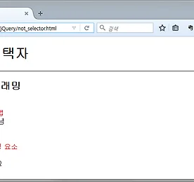 jQuery 썸네일형 리스트형 [jQuery] NOT 선택자 [jQuery] NOT 선택자 not_selector.html jQuery 선택자 웹프로그래밍 Java 과정 기본 문법 OOP 개념 API 활용 JSP 과정 스크립팅 요소 지시어 액션태그 출력결과 더보기 [jQuery] 필터 선택자 [jQuery] 필터 선택자 filter_selector-1.html jQuery 선택자 웹프로그래밍 Java 과정 기본 문법 OOP 개념 API 활용 JSP 과정 스크립팅 요소 지시어 액션태그 출력결과 filter_selector-2.html jQuery 선택자 웹프로그래밍 Java 과정 기본 문법 OOP 개념 API 활용 JSP 과정 스크립팅 요소 지시어 액션태그 출력결과 더보기 [jQuery] 자식 선택자 [jQuery] 자식 선택자 ① children()을 사용한경우 children_selector-1.html jQuery 선택자 웹프로그래밍 Java 과정 기본 문법 OOP 개념 API 활용 JSP 과정 스크립팅 요소 지시어 액션태그 출력결과 ② children()을 사용하지 않은 경우 children_selector-2.html jQuery 선택자 웹프로그래밍 Java 과정 기본 문법 OOP 개념 API 활용 JSP 과정 스크립팅 요소 지시어 액션태그 출력결과 더보기 [jQuery] 후손 선택자 [jQuery] 후손 선택자 ① find()를 사용한 경우 descendant_selector-1.html jQuery 선택자 웹프로그래밍 Java 과정 기본 문법 OOP 개념 API 활용 JSP 과정 스크립팅 요소 지시어 액션태그 출력결과 ② find()를 사용하지 않은 경우 descendant_selector-2.html jQuery 선택자 웹프로그래밍 Java 과정 기본 문법 OOP 개념 API 활용 JSP 과정 스크립팅 요소 지시어 액션태그 출력결과 더보기 [jQuery] 기본 선택자 [jQuery] 기본 선택자 selector-1.html jQuery 선택자 jQuery Selector 연습 - 1 jQuery Selector 연습 - 2 jQuery Selector 연습 - 3 출력결과 더보기 이전 1 ··· 13 14 15 16 17 18 19 ··· 21 다음